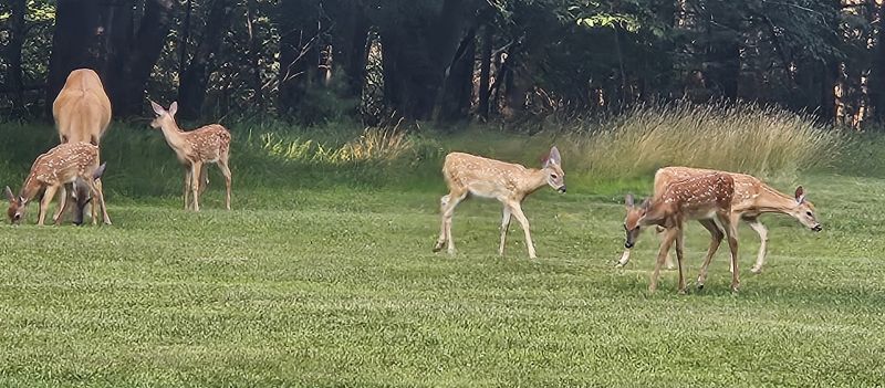 Spotted these two fawns and their Momma having a snack close to the pool today.